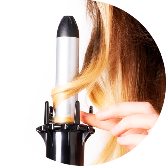 Ligue e selecione o botão do lado desejado para modelar os cachos.